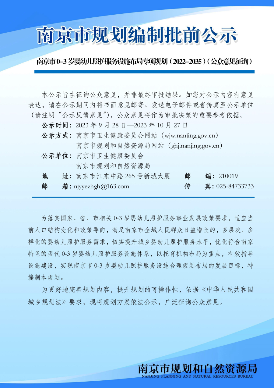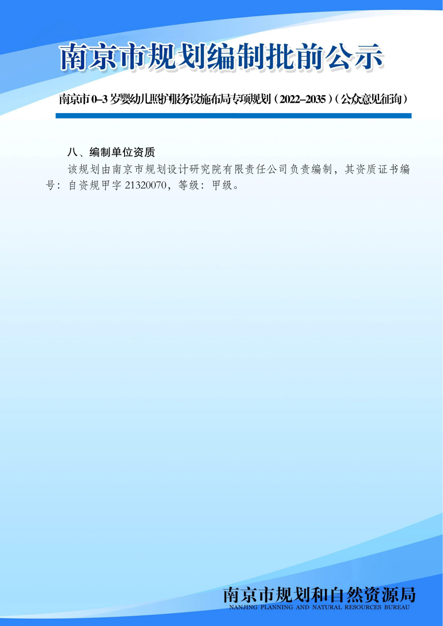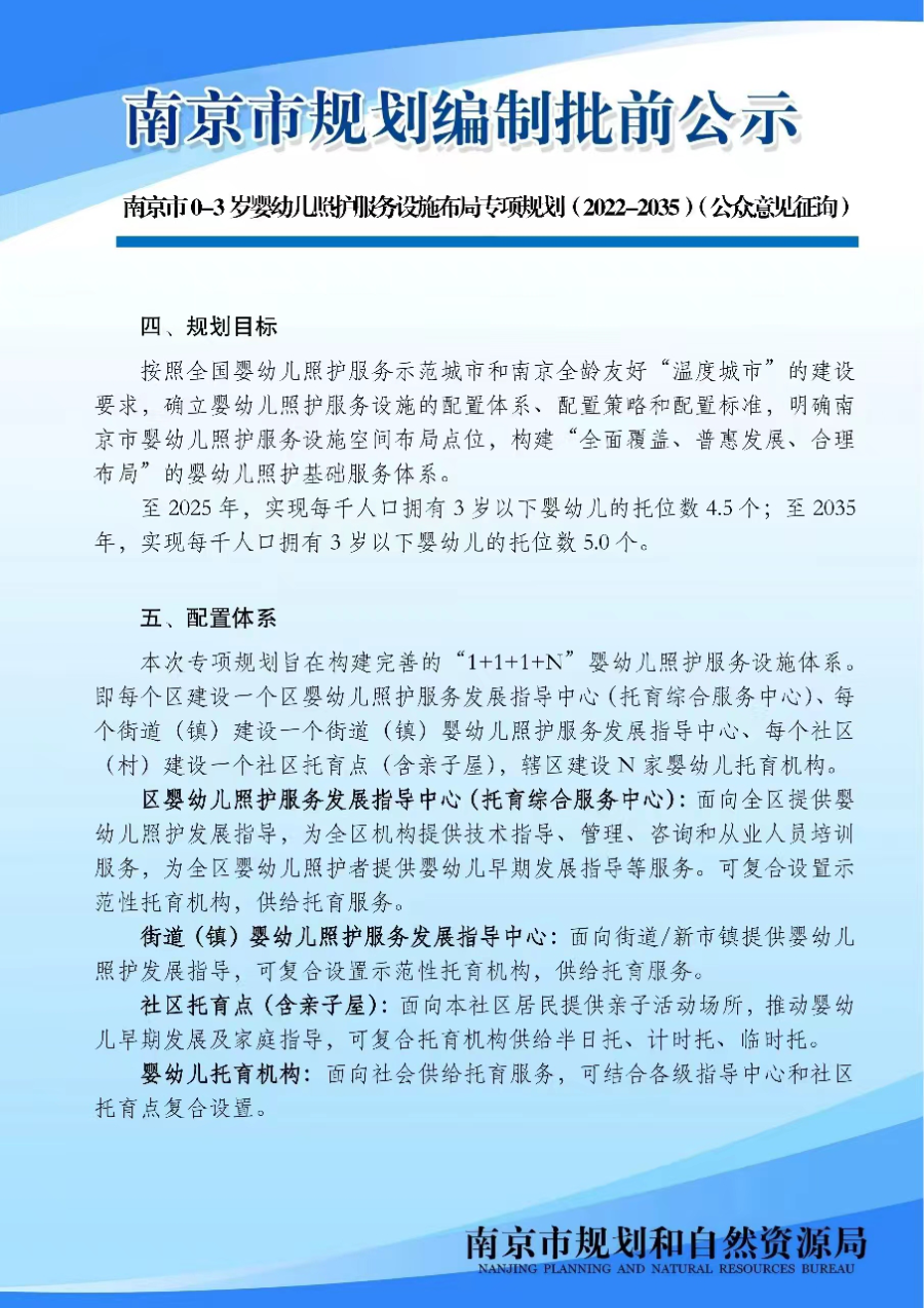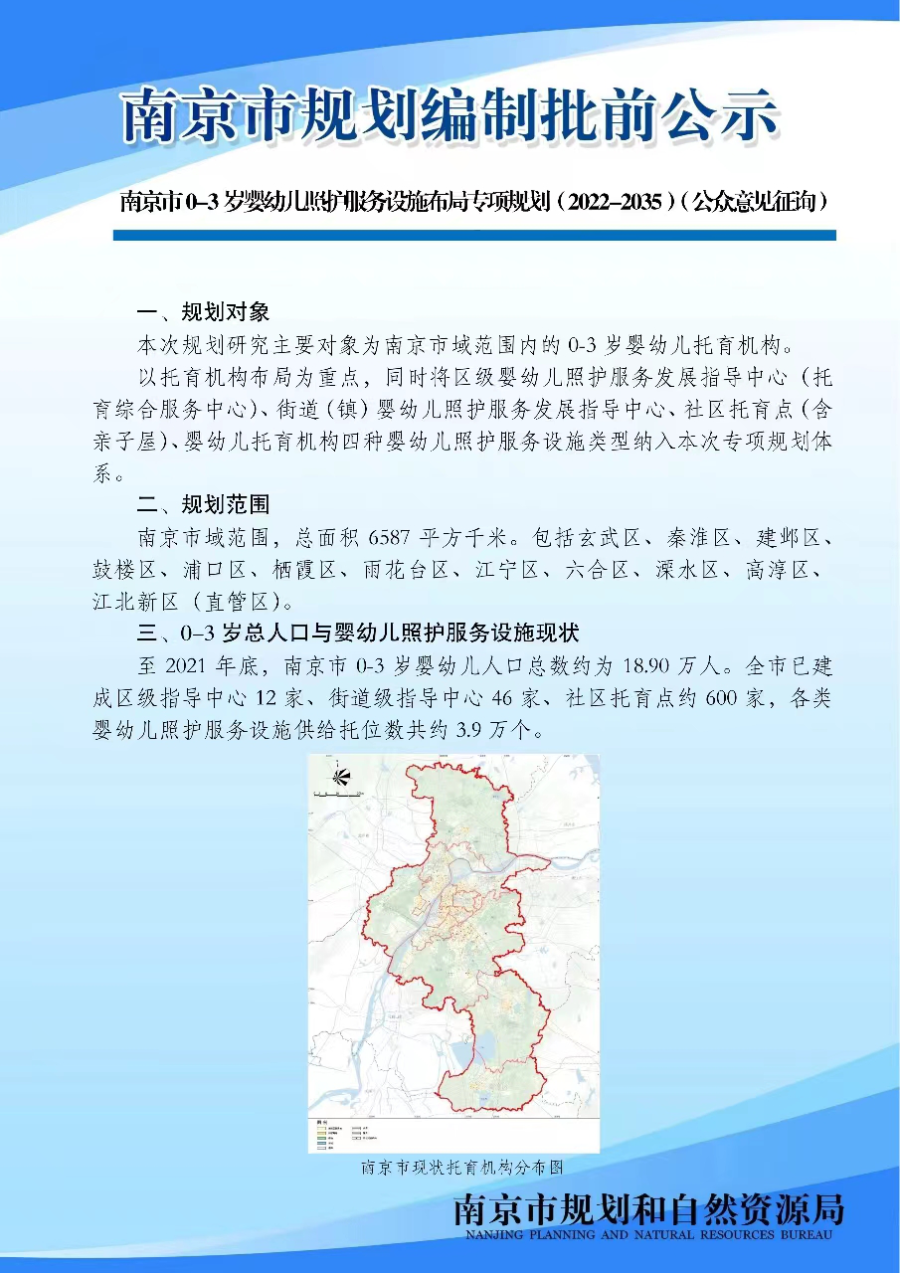 南京市0-3岁婴幼儿照护服务设施布局专项规划(2022-2035)(公众意见征询)